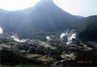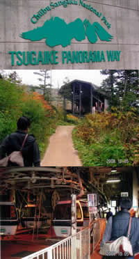 ホテルのフロントで予約すると、現地まで無料で送ってくれるというので、栂池自然園へ。ゴンドラを20分、ロープウェイを5分乗り継いで。少し怖いくらい。 |