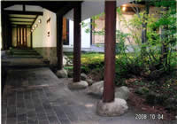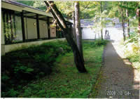 館内の渡り廊下。右の大きな窓のある部屋にはピアノもあってコンサートもするそう(今回は済にしまわれていました)。ステキでした。 |
