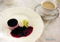 デザート。ブルーベリーのムースでした。メニューも信州のハーブ鳥など地元のがあって良かったです。 |