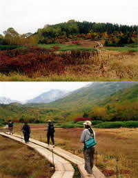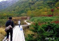 尾瀬を散策。全部まわると3時間くらいかかるそう。標高が高いので5℃近いので、相当寒いよと言われ、予定外だったためもって行った服を全部着て歩く。実際は歩いているのでそこまで寒くはなかった。板の上を歩くので、歩きやすくとても良いと思った(大人から子どもまで)。 |