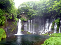 最初の目的地、静岡県富士宮市にある白糸の滝へ到着。滝壺のそばまで来ると、臨場感ある水しぶきと滝の音。マイナスイオンに癒されました。