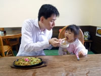 焼きそば大好きな2歳の娘は大喜び。大きな口をあけていただきまーす! |