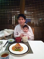 夕食は雰囲気のいいレストランでコース料理。赤ちゃんを寝かせるベッドも貸していただき落ち着いて食べられました。お子様メニューも前菜やメイン、デザートと品ぞろえ豊富。食べるの大好きな娘は大喜び。娘のメインは本格的なビーフシチュー、親はそれぞれ肉料理と魚料理を堪能しました。