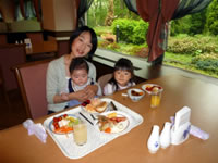 朝食はビュッフェ。和洋食が食べ放題なので家族全員ついつい食べ過ぎてしまいました。