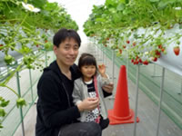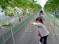 ハウスなので雨でも平気。30分食べ放題。2歳の娘は最近使えるようになったハサミでイチゴを上手に切って食べていました。大きな赤いイチゴを見つけると大興奮!「みーつけた!」